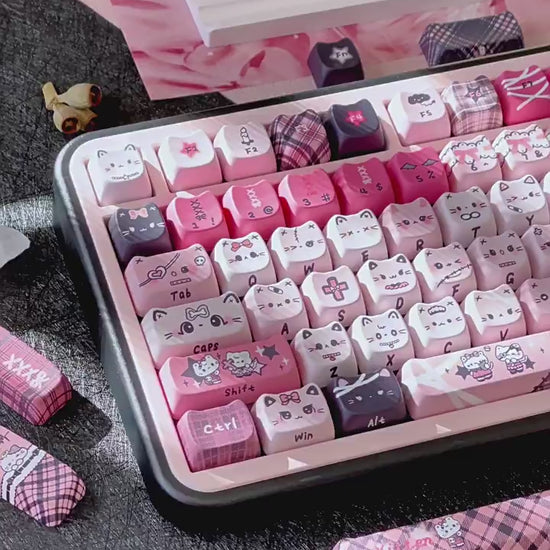 Featuring adorable Yabi cat designs, plaid accents, and a mix of cute & cool pink-black tones, this set brings personality, charm, and uniqueness to any mechanical keyboard.